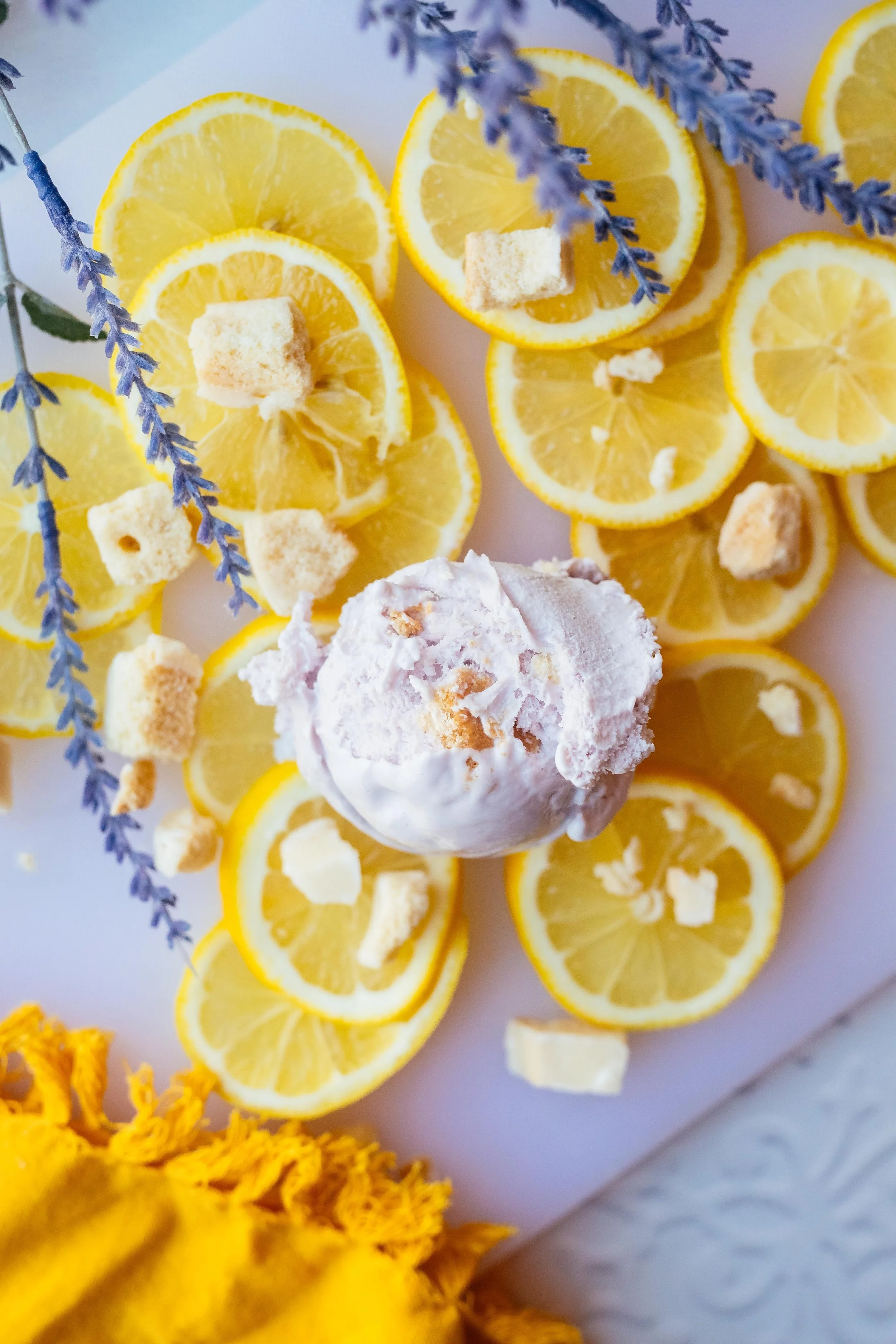 Lavender base with housemade lemon frosted shortbread cookies